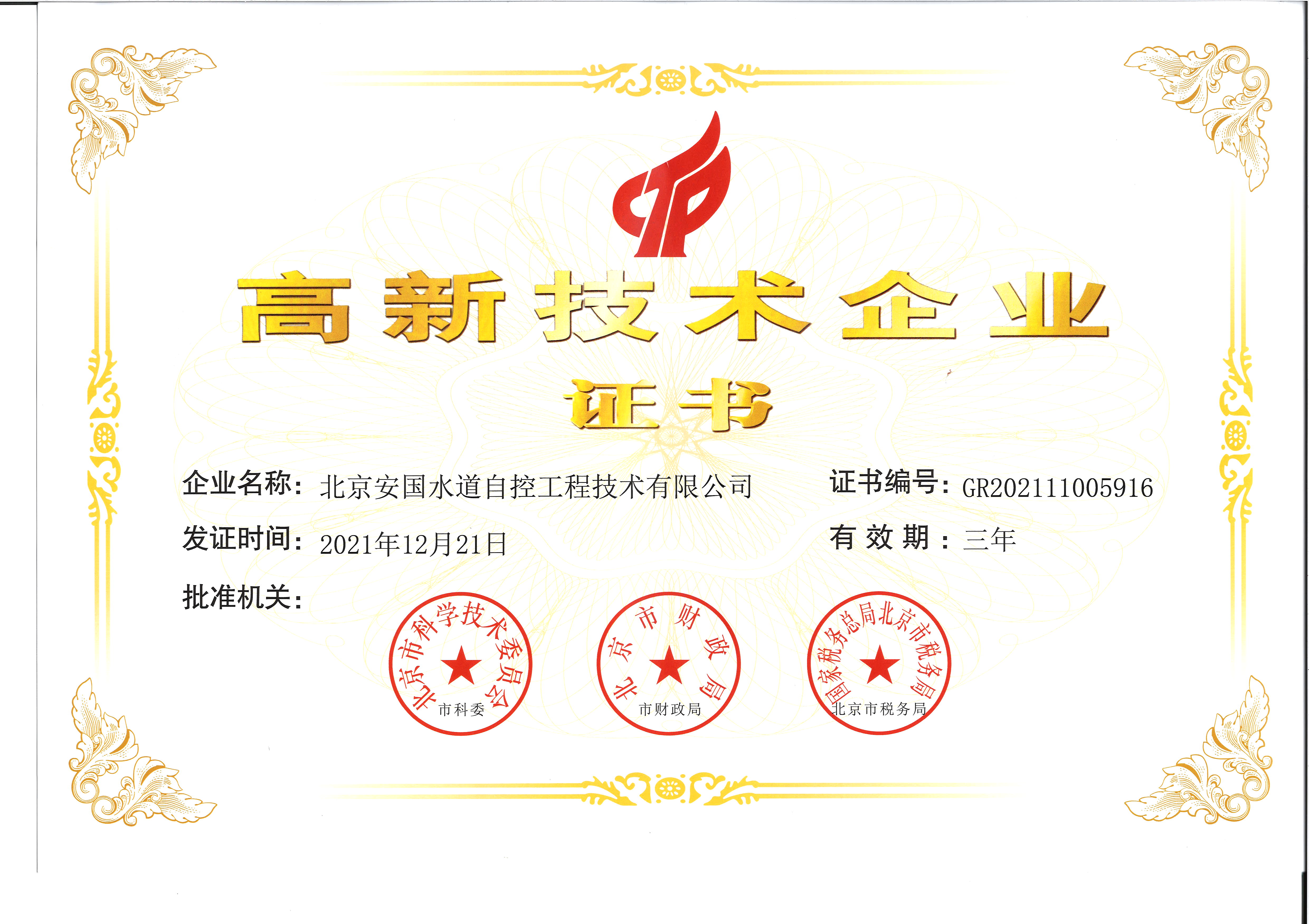 北京安國水道自控工程技術(shù)有限公司2015年入駐中國給水排水品牌委員會(huì)